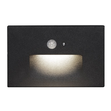 Integrated LED recessed fixture - Motion and light detection - Insulated wall rated for direct contact with insulation - For all interior and exterior applications - Suitable for wet locations - 3W - 85 Lumens - 3000K.