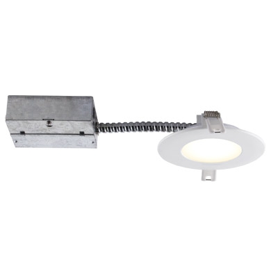 Integrated LED recessed light fixture - Insulated ceiling rated for direct contact with insulation - For all interior applications - Compact & flexible fixture designed for ceiling clearance of 1 ½” (38 mm) and more - 750 Lumens - Suitable for damp location.
