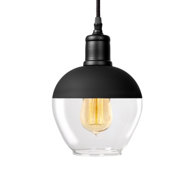 Suspension simple de style vintage avec abat-jour de verre transparent.