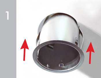 Percez l’ouverture dans le plafond à l’aide du gabarit fourni sur l’emballage de l’encastré. Passez et retenir le luminaire encastré dans l’ouverture percée au plafond à cet effet.